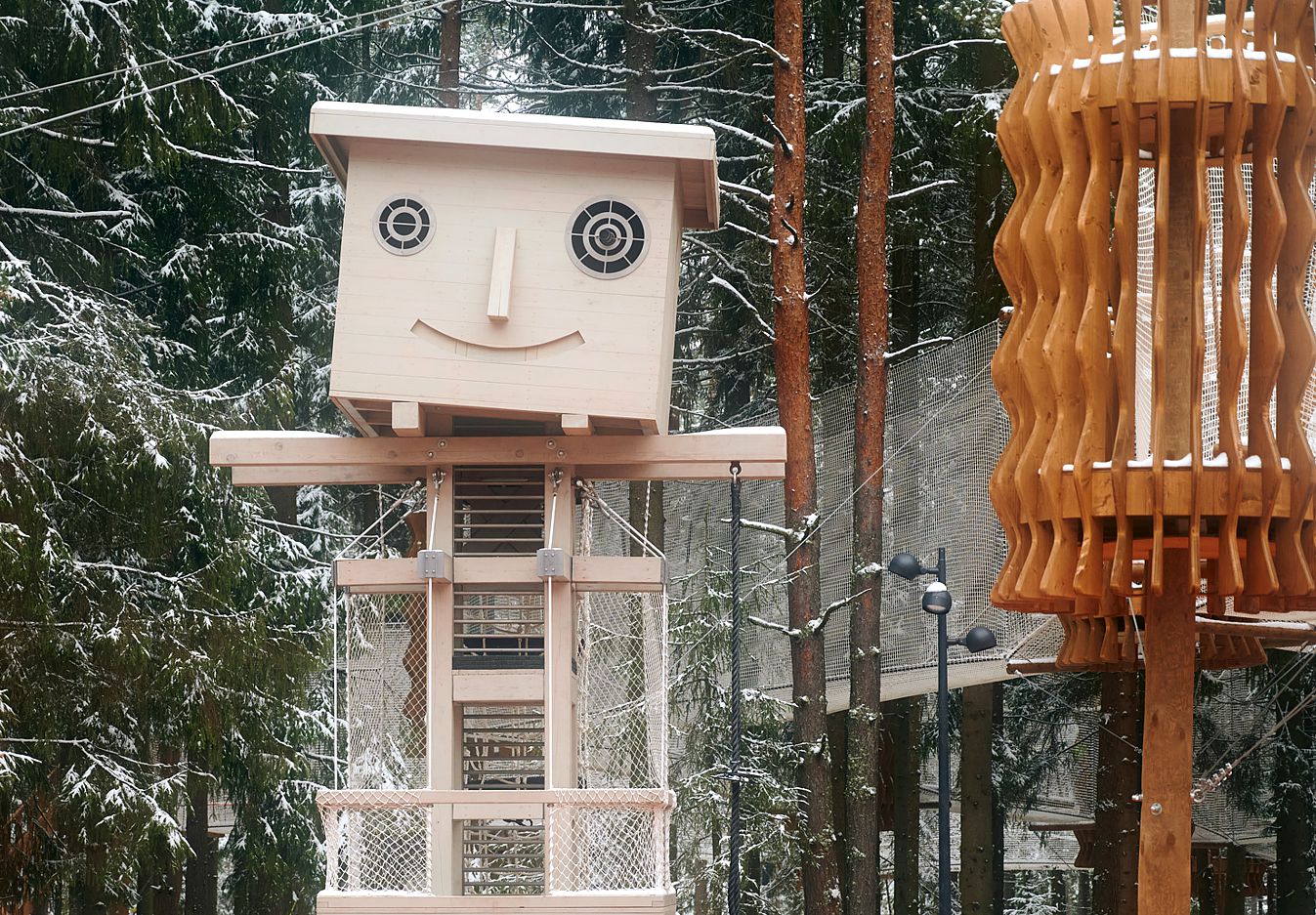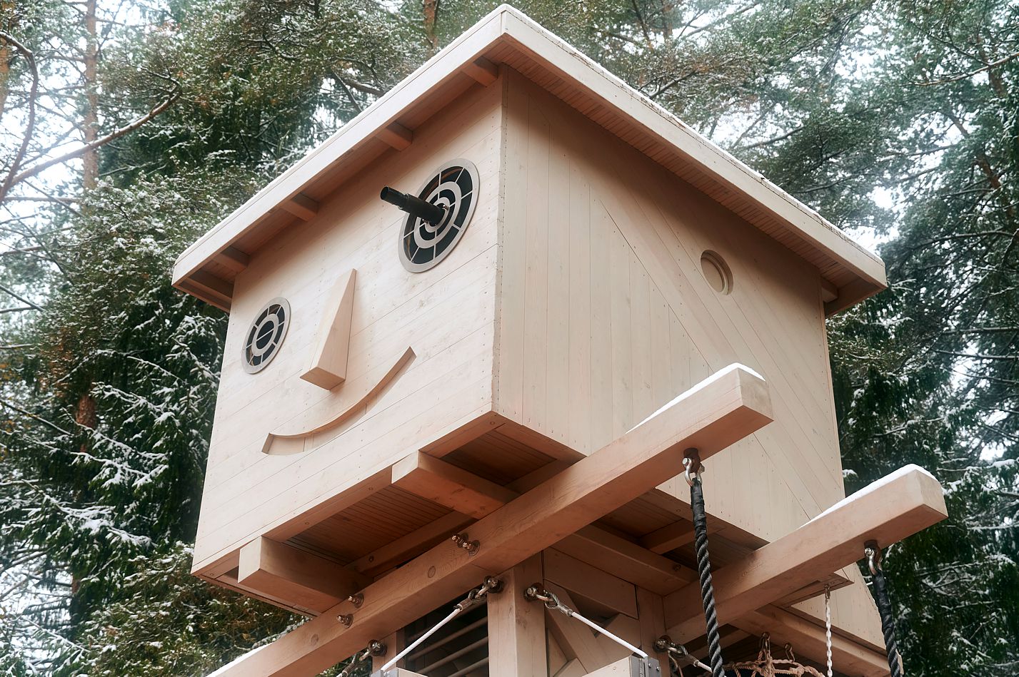 Детская площадка изготовлена из качественной древесины.